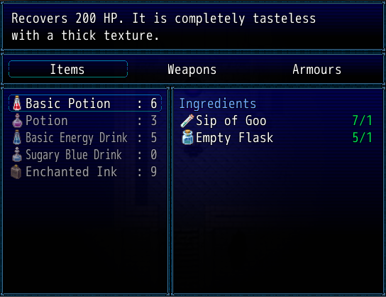 -Crafting is currently tedious... I'll throw in a script or something since I am bad at this... Added Syzu's Crafting System