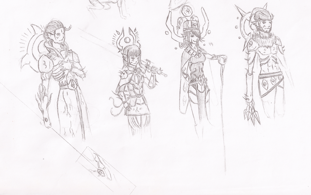 This is a much older image I sketched with pencil about a year ago, but I finally got around to scanning it. These are design ideas for 4 possible villains of 4Runes. Their designs are based off real world creatures that may convey a sense of fear in certain areas. From left to right, its a King Cobra, a Black Cat, a Royal Moth, and a Lamprey Eel. I tried my best to make their faces reflect their personality.