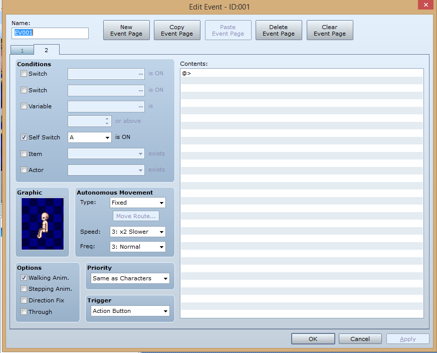 - Turn Self Switch A OFF so the event can start from the beginning when triggered.