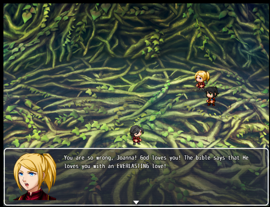 DISCLAIMER - As the name implies, this game contains a significant amount of religious, and specifically evangelical Christian content. The main purpose of the game is to get a clear understanding of biblical verse memorization and application in an entertaining RPG environment. See this video for an idea of how that plays out.