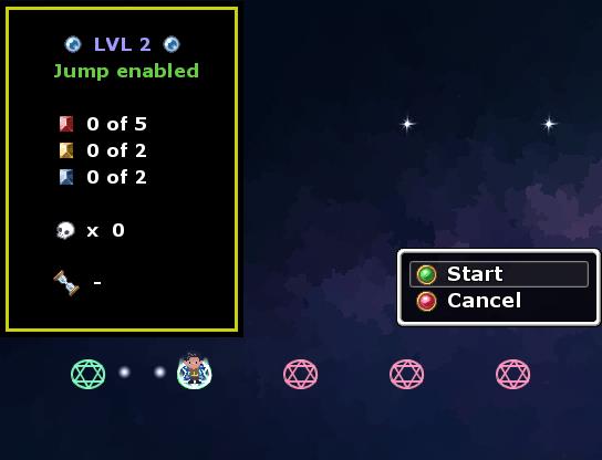 Centauri is a platformer game of five short levels. There is an optional tutorial to learn all the required mechanics to master every level. Basically you can run and you can jump over a small distance while avoiding enemies and collecting gems. From the custom menu you can reset your current screen if you get stuck.