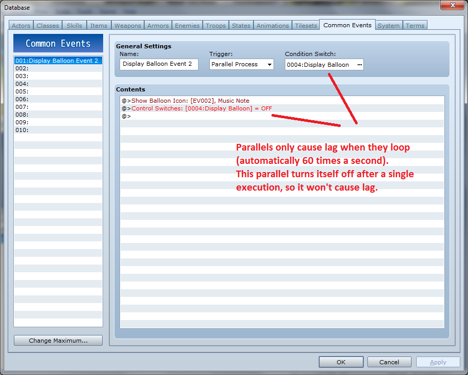 after this there is a baloon icon and then Set move route after a while there is another:
