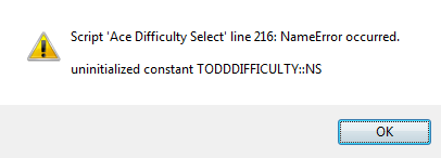 return_scene))if $game_switches[TODDDIFFICULTY::SWITCH] == true @command_window.x = Graphics.width/2 - 170 @command_window.y = Graphics.height/2 - 50 end #-------------------------------------------------------------------------- # * Create Difficulty Window #-------------------------------------------------------------------------- def create_name_window @name_window = Window_DifficultyName.new @name_window.x = Graphics.width/2 - 170 @name_window.y = Graphics.height/2 - 97 end #-------------------------------------------------------------------------- # * [easy] Command #-------------------------------------------------------------------------- def command_easy $game_system.todd_difficulty = 0 Audio.se_play("Audio/SE/" + TODDDIFFICULTY::SE, 100, 100) return_scene end #-------------------------------------------------------------------------- # * [normal] Command #-------------------------------------------------------------------------- def command_normal $game_system.todd_difficulty = 1 Audio.se_play("Audio/SE/" + TODDDIFFICULTY::SE, 100, 100) return_scene end #-------------------------------------------------------------------------- # * [heroic] Command #-------------------------------------------------------------------------- def command_heroic $game_system.todd_difficulty = 2 Audio.se_play("Audio/SE/" + TODDDIFFICULTY::SE, 100, 100) return_scene end #-------------------------------------------------------------------------- # * [hard] Command #-------------------------------------------------------------------------- def command_hard $game_system.todd_difficulty = 3 Audio.se_play("Audio/SE/" + TODDDIFFICULTY::SE, 100, 100) return_scene end end if TODDDIFFICULTY::MENU == true#==============================================================================# ** Scene_Menu#------------------------------------------------------------------------------# This class performs the menu screen processing.#==============================================================================class Scene_Menu < Scene_MenuBase #-------------------------------------------------------------------------- # * Create Command Window #-------------------------------------------------------------------------- alias todd_dif_menu_add_menu_command create_command_window def create_command_window todd_dif_menu_add_menu_command @command_window.set_handler