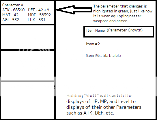 Another question I have is... why hasn't a script been made for this yet? It's a really annoying problem. I'm tired of having to go to the Status Screen over and over again in order to look at everyone's stats just because the default system only displays HP and MP, when all I want is to proportionally use my growth items for Defense.