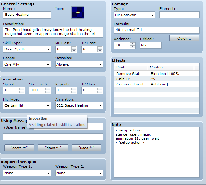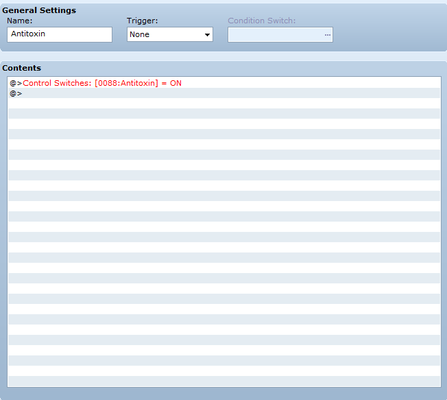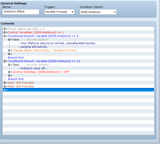 The first thing I think is that I must have accidentally set the event trigger to autorun instead of parallel process but when I check it it's already set to parallel. So I spend 20 minutes or so comparing it to similar events that I know work properly to see if I've done something differently, after a bit of frustration I decide I'll try something random and set the event to run from the beginning of the game like some of the other systems... and it works perfectly fine then! So then I think it's got to be something to do with the event that activates the item event, but all that's in that is control self switch (on) so then I decide I'll have a skill activate that event instead of an item... and that works fine to... only activating the event through an item causes the game to freeze apparently. Someone please explain to me why the bloody hell this is because it does not make any sense at all that it should work that way to me.