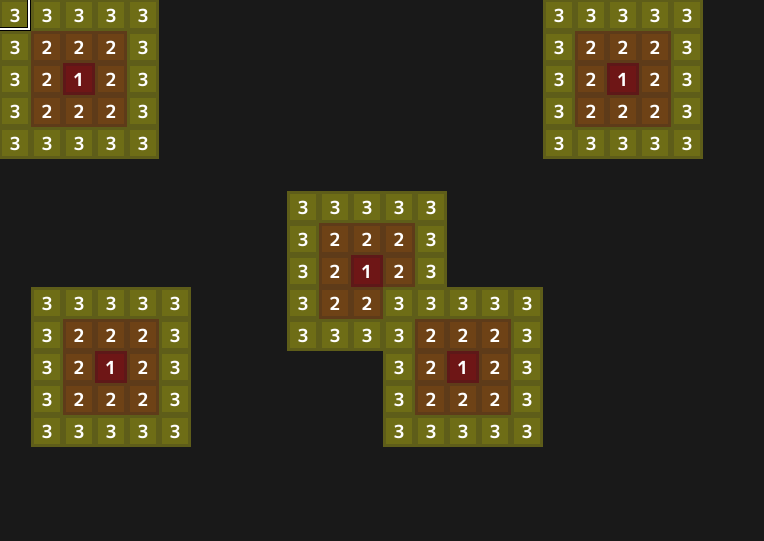2 and 3 are the vicinity around the event that the player cannot step in