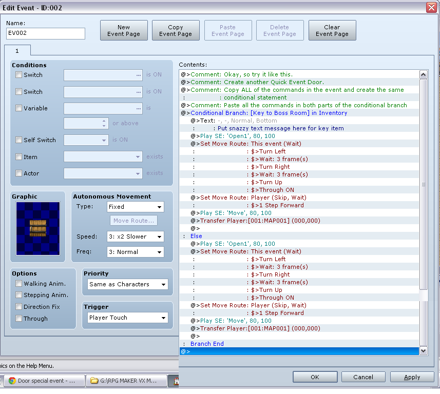 Okay this is my first post but i do need some help i want a door that can possibly go three ways the first two ways are standard you can flick back and forth no problem but the third one is when the player has a certain item in their inventory such as a weapon or key item and once they go back through that door its not the normal one as they are now in the third area it looks the same but has a boss battle to deal with. i hope that made sense and also heres the screenshot of the code im currently testing ive not done this before so forgive me if its completely wrong