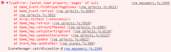 And it seemed to be all gravy, until I tried entering and exiting the game menu again and encountered the same "Cannot read property 'pages' of null" TypeError: