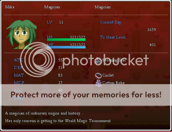 Mika - A fourth-wall breaker Master Magician who learns the awesome "Tri Magic Attack". She yearns to reach the World Magic Tournament in Central. But will everything goes as planned? She seems to know more than she's letting on and knows your existence as well.