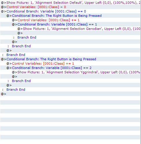 I've managed to calculate potential class affinities, and I've been able to arrange the classes in order of best to worst match, and I've been able to event it so the best-matched class (or classes if they're tied), second-best class(es), and worst-matched class(es) are displayed in the right order in the text box.