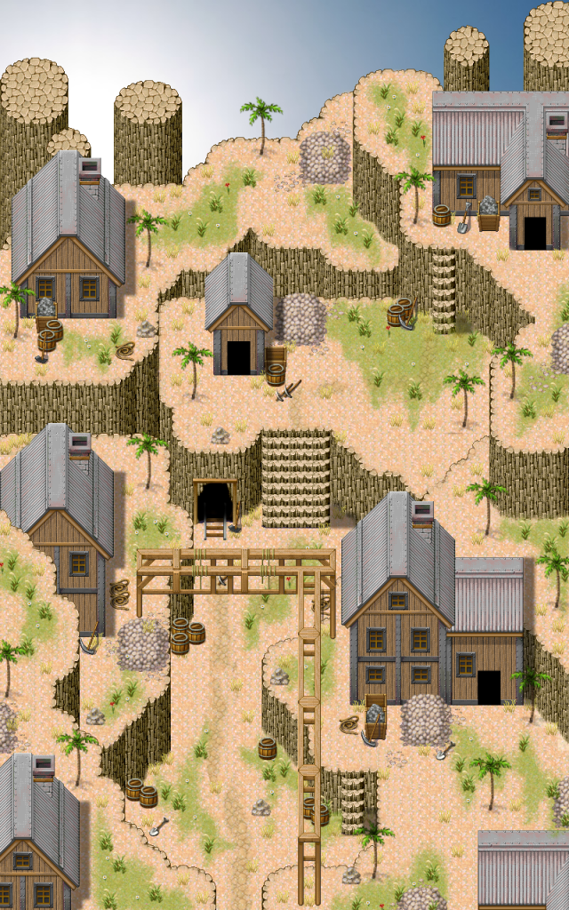 @Cashmere - One thing that jumps out to me is that in your first map, the stone tile you are using is a floor tile so it throws the perspective off for me a bit. However, I think you make it work on the one building on the left where the braces on are on both sides. I think if you made that uniform on all the buildings, it would really help. Also on buildings where you have to use shift-click or use tiles from B-E, you need to be sure to go back and add shadows to the right sides. In the first one, shadows falling onto the crates and things on the right will help add depth. Same thing in the second map where you have the sections of differing heights. Use the shadow pen to add shadows to the right sides and it will do wonders. On the last map, I find it odd that there is a cave like that in the middle of the road. Maybe it's supposed to be a tunnel? It just looks really odd to me. Really, overall not bad though. Adding: you posted your interior maps while I'm typing this, I'll have to come back to those.