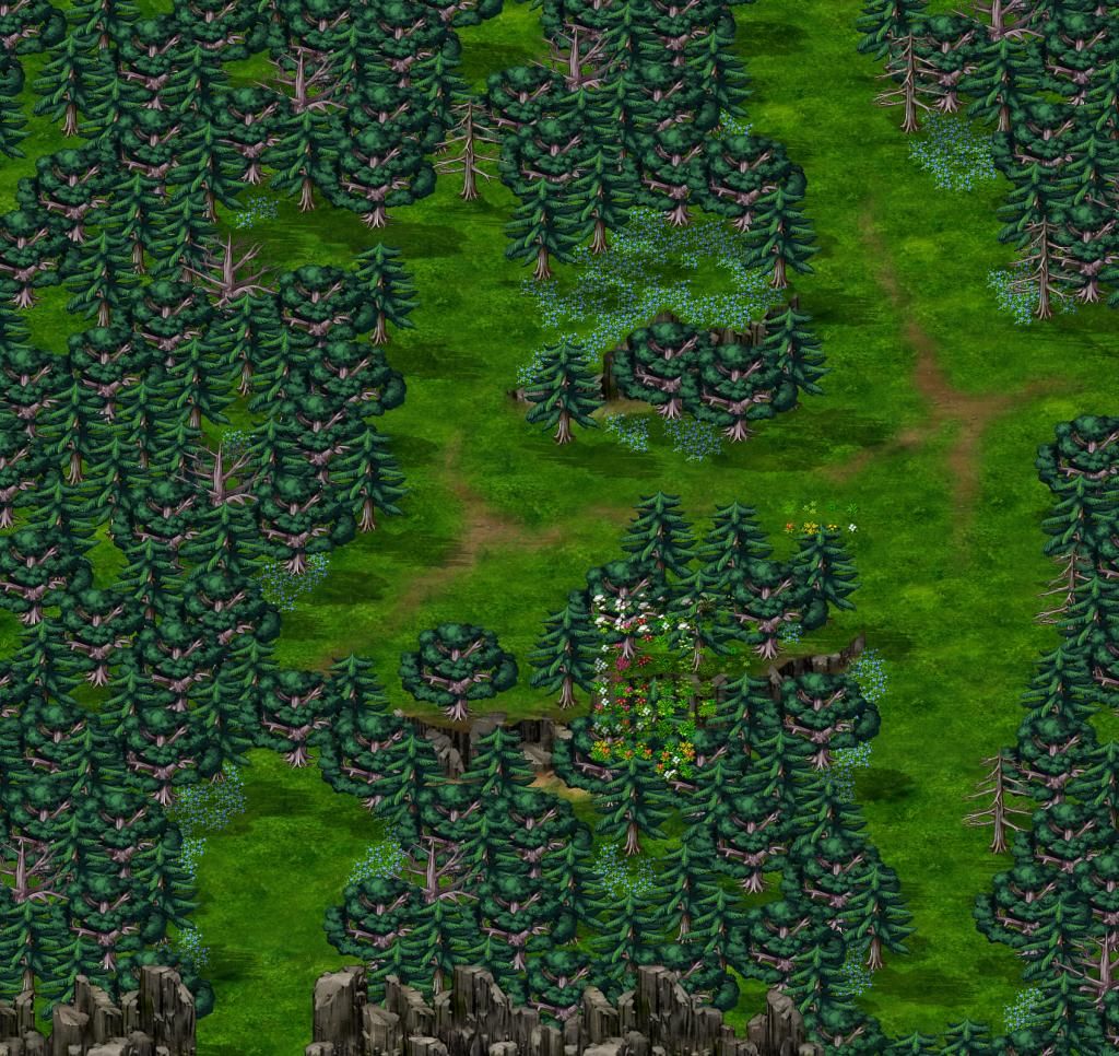 The ground, water and cliff tiles look like BenBen's. If so, I suggest you use his flowers and grass as well, because the Ace tiles don't work.