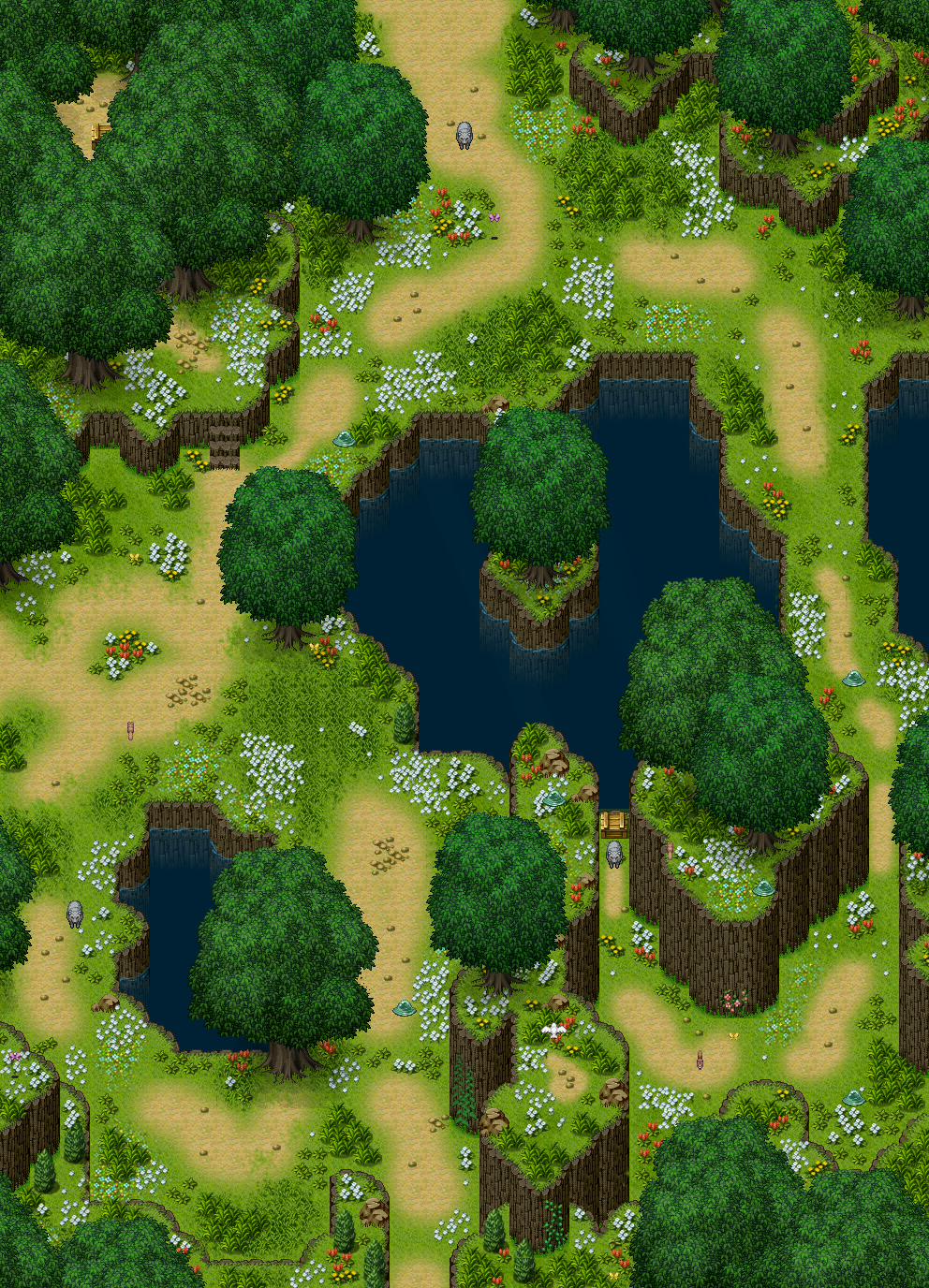 Sinweaver - The parallaxing looks good, I like that the path has a tiny bit depth to it, but I think I would find that map really unappealing in game. It's just a straight walk for 30 tiles, from your previous screens I'm hoping it might just be a cutscene map.