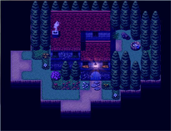 The house looks very warm and inviting. I'm not sure if that's what you intended, but that's what I think when I see it. The lighting really helps too. The little weed plants...are they able to be walked over? I'm curious because one of them is blocking the path to the door.