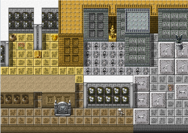 For the floors, I also compiled Aindra's floors, adding more staircases and making a complete A5 set. The images on the floor tiles are from actual hieroglyphics. They aren't incredible, but they add to an ancient themed game, anyways.