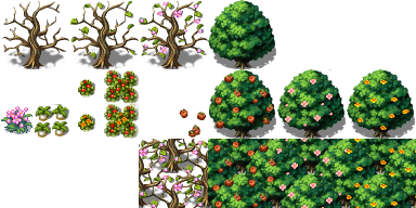 Map example - World map grass tiles and Apple Trees