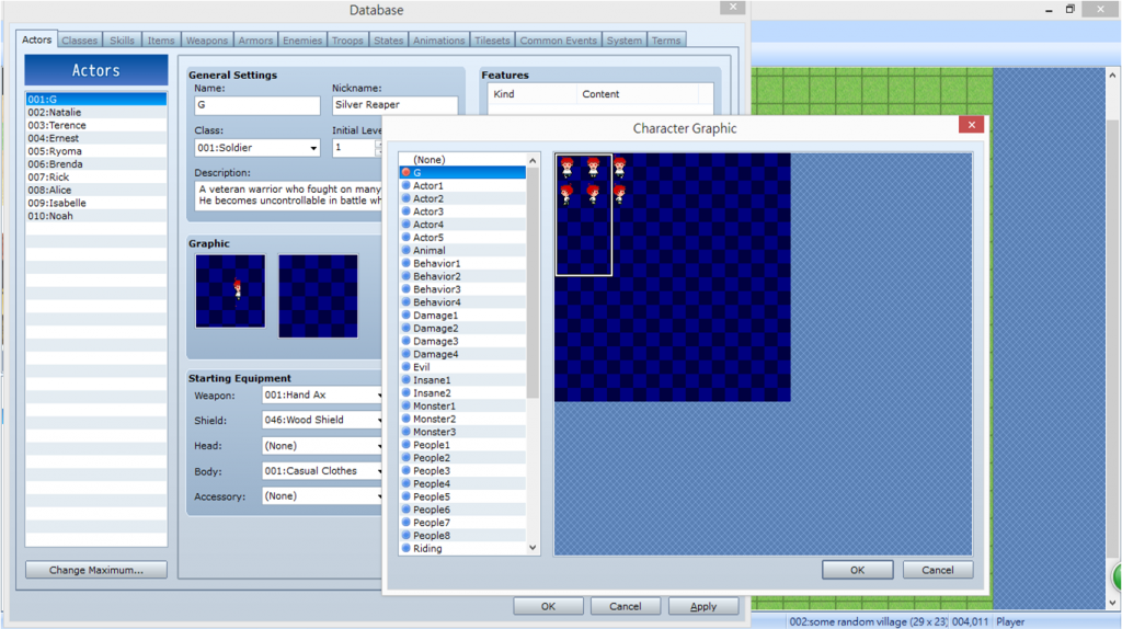 Right now I'm creating my own sprites based on the ones from Earthbound. I imported it while it's halfway-done for testing, and it turned out like this: