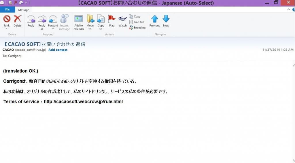 English Translation of CACAO's letter for those who don't speak Japanese.
