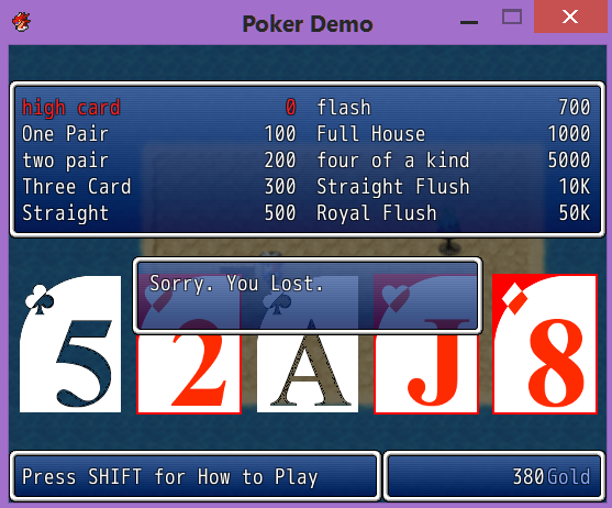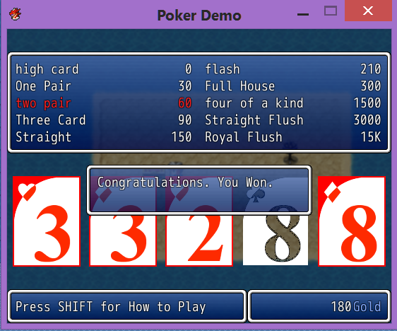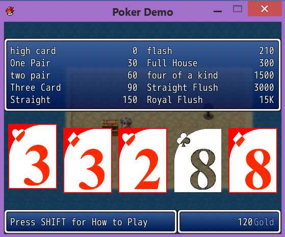 This is a working English translation of CACAO's Poker Mini Game Script for RPG Maker VX ACE.