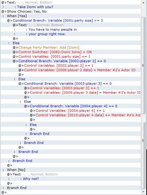 I ask this, because the main hero has several different travel companions that they can choose to have in their party. Here's the scene I'm trying to make. The player enters this little cave and I want whoever is person #2 in the party to walk over to a chest they notice and attempt to open it. If it was a set group, this would be very easy to do. The problem is I don't know who the player is going to have as the #2, or even as the #3 and #4 person in the party. I know I can do a \P[#] to have that person in the party line appear to talk. I've been poking around with the options for awhile now and can't seem to figure it out. The only thing I can think of is a long complicated branch of conditions and switches, but I'm hoping there's and easier way then that.