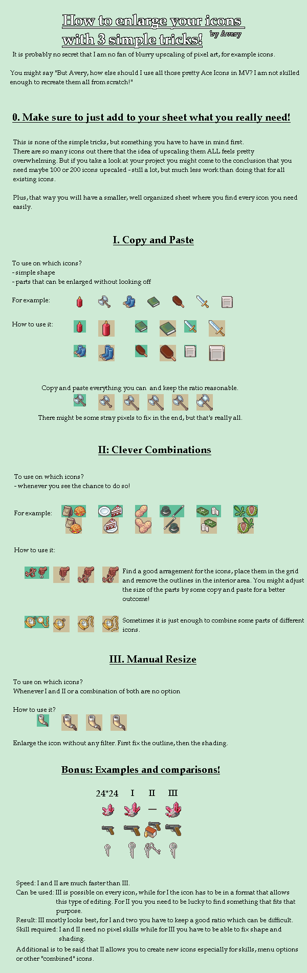This also applies to tilesets. VX has some very nice fluff decorations, and if you combine a few together on the same tile, it can make up for being smaller.