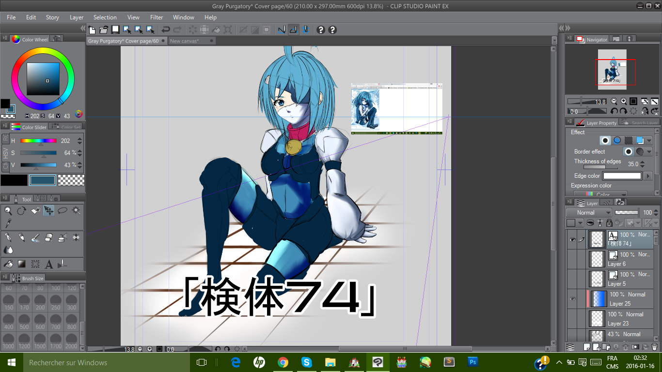 I think you should tone down the hue shifting, just for the shadows and make them a little less saturated. Also, pick a shade that's closer to the base color, you've gone too many steps away with that dark blue. That first attempt had some nice detailing that I think you should try to do with less contrast and no highlight. Also think a little about how the outfit is constructed. Where are the seams? Remember that the edges will be slightly bulkier because of the hem. Stuff like that. Your highlights are too big still, make them much more thin. You're also being lazy with the light source, I know you can do better with that. Right now the legs look flat and like they each have a different light source because you're focusing too much on what it looks like and not placing it well. Those legs are in completely different positions, they should not have the same balance of shadow and light.