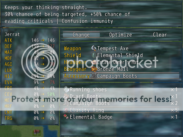 Depending on the severity of the negative tradeoffs of the item, I realize it becomes important to let the user know that if they equip the item then their mp degenerates or they cannot be healed, etc..