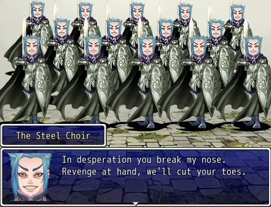 A guy called Bob got tired of people making fun of his looks, so he unleashed a magical curse on the whole land that turned everyone's face into a hideous mug. Now a small group of heroes is trying to find a way to lift the curse and get their original faces back. Turns out this task wasn't as simple as they had thought. Being only amateurs, their best and most reliable fighting methods utilise the unconventional elemental masteries of hair, moustache, and teeth. Bite the enemies, tangle them in hair, or simply draw moustaches on them. It's your choice!