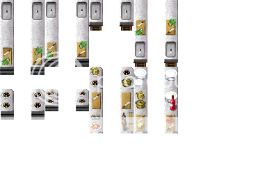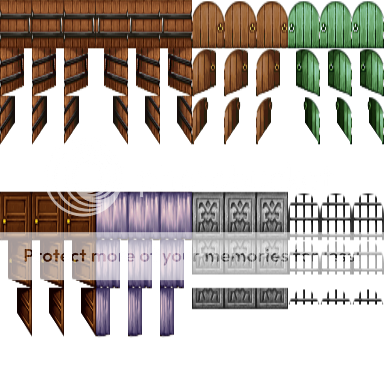 One tile high doors can look a bit silly as sprites always hit their heads on the top of the opening, and 2 tile high doors don't always fit, so let's have a compromise, and go for one and a half tile high doors. Plus some recolours. The default door opening graphics will not fit, so to save you making them, here they are as well.