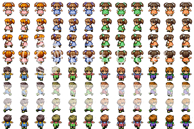 Mack's old man and old woman - because not every old person uses a walking stick or walks with their hands behind their backs. I changed Mack's heads for Ace heads so that they blend better with other sprites.