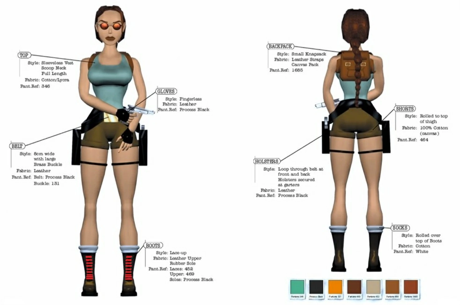Description: Lara should wear her classic outfit (see reference images) and if it wasn't too much trouble, I would also like to have a sprite of Lara swimming underwater, since I have an underwater system, and using the default character doesn't look good.
