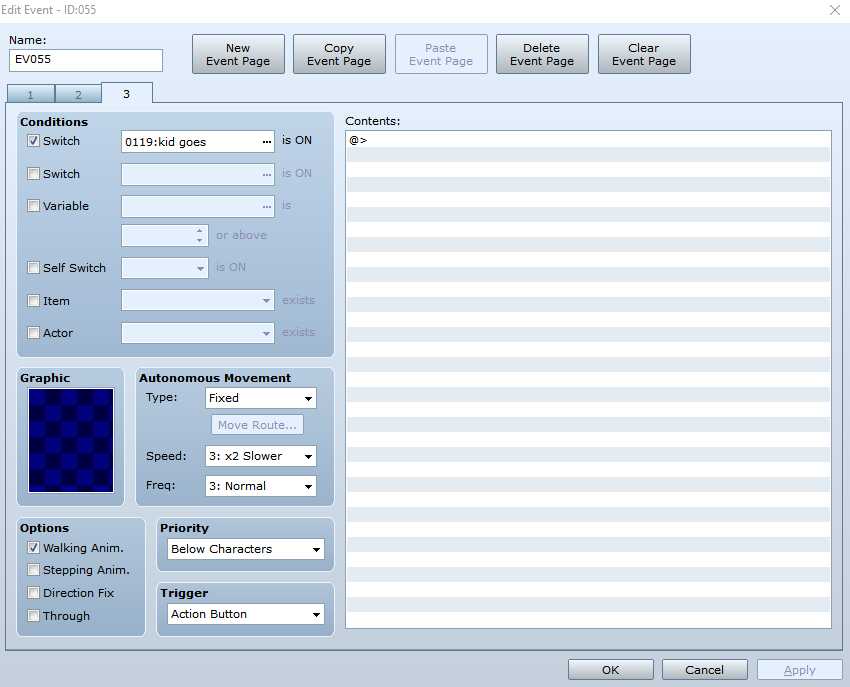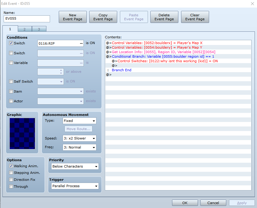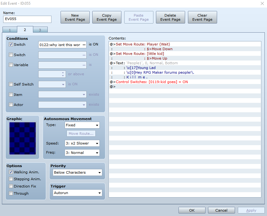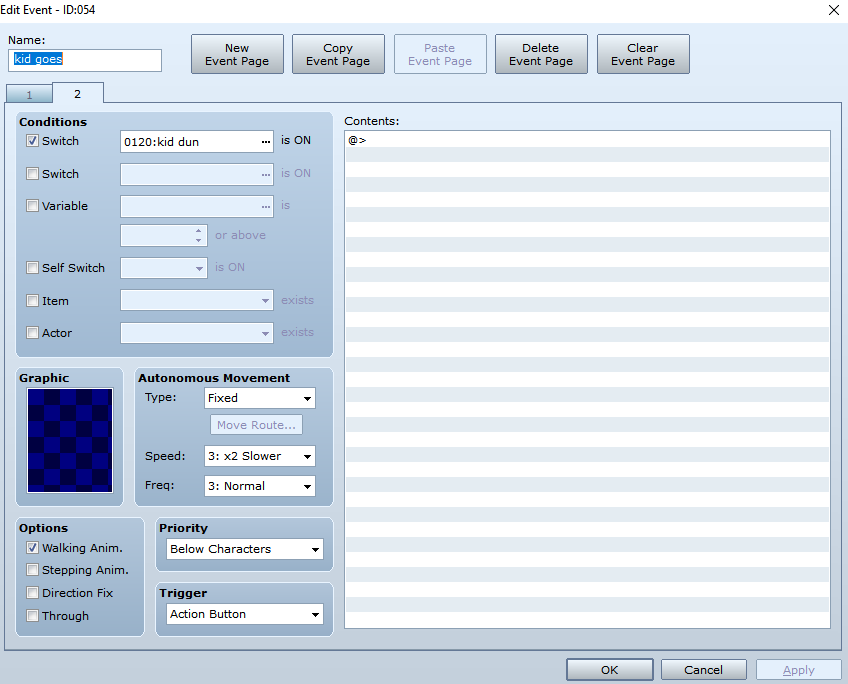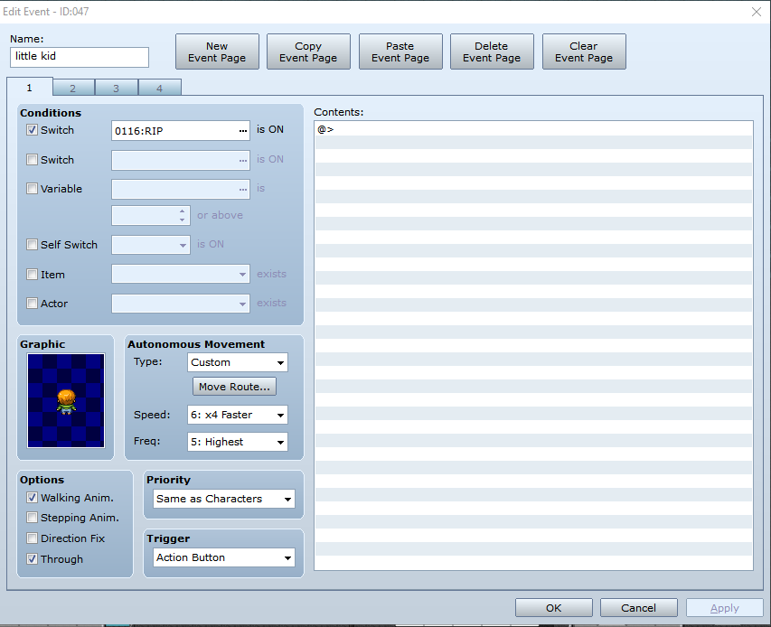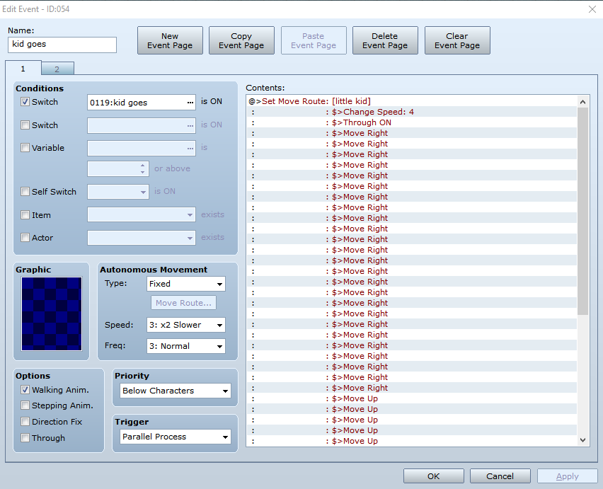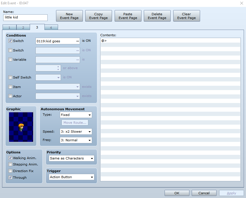 And because I am using Yanfly's Move Restrict Region script, I made sure to leave the restrict tags out of the kid's way.