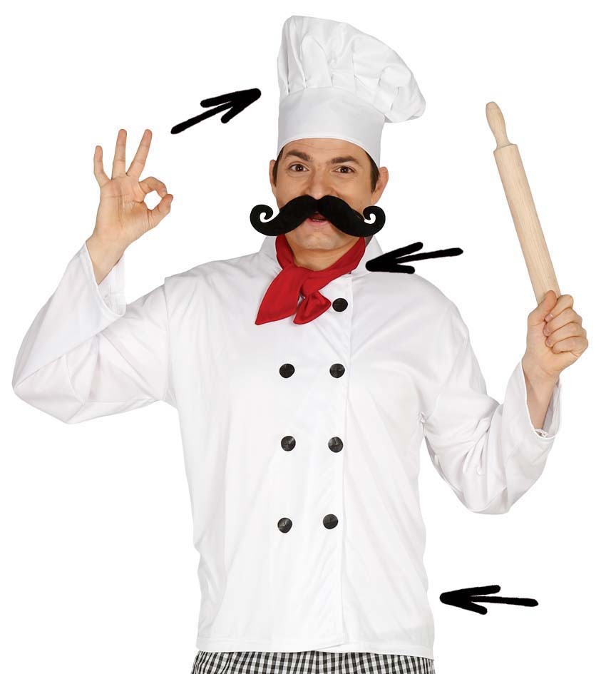 Description: I'm looking for Accessory 2 and Clothing parts for a chef character - a chef hat and some kind of outfit that looks somewhat like one in the reference images (white jacket, double rows of buttons, black defining line just off center; black or checkerboard pants, black shoes). Need them to be accessible to both male and female sprites.