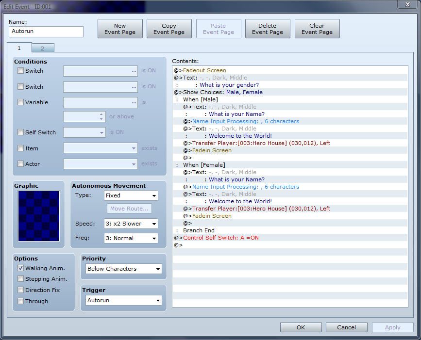 I generated a new sprite and face for my main characters (both male and female) added them to the system database.