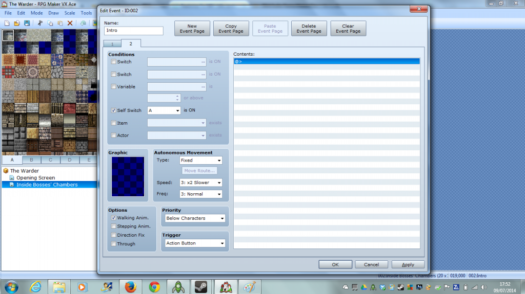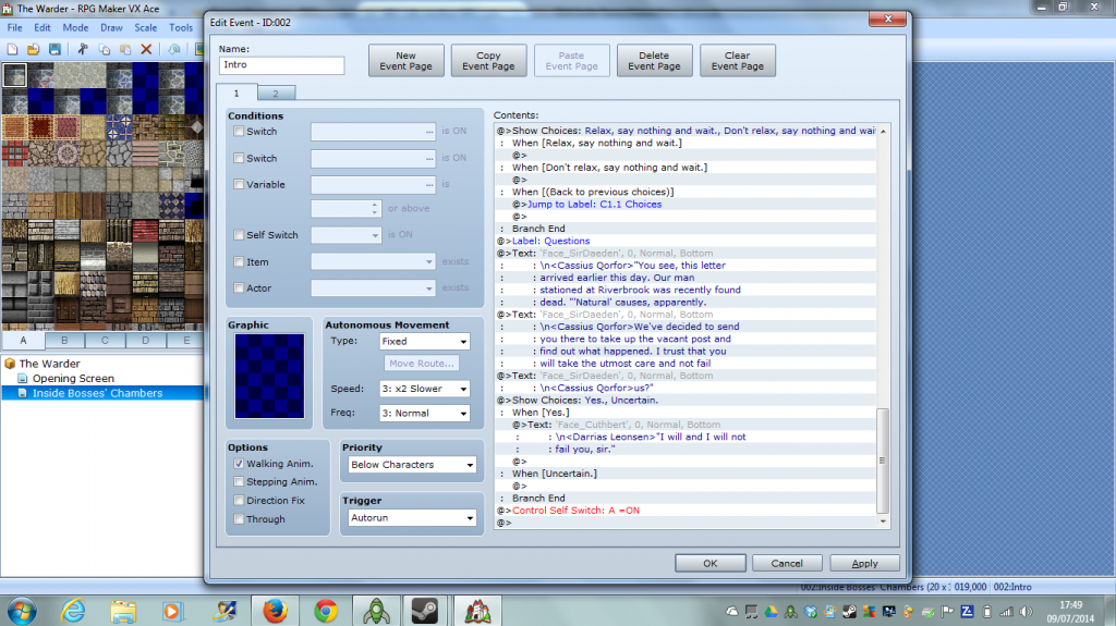 I've been enjoying my progress so far but right now I'm stuck in making an event in my intro cutscene. What happens