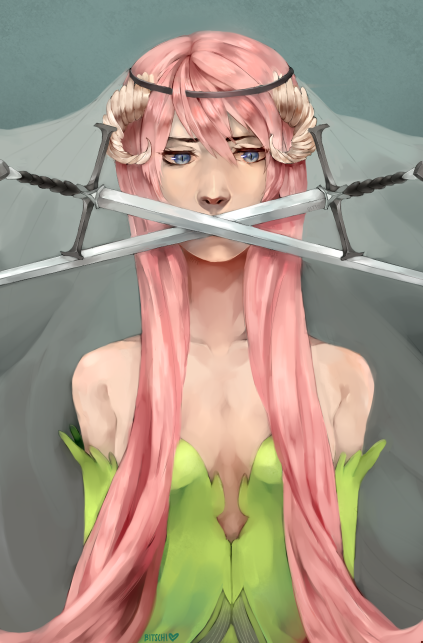 This last one was supposed to be some sort of necromancer chick?? Who dressed primarily in white. Originally, in the shadows of her skirt were supposed to be a whoooooooole bunch of skeletons and junk reaching out towards the viewer to push the whole necromancer vibes. But then laziness striked............ ʕ•ᴥ•ʔ ʕ•ᴥ•ʔ ʕ•ᴥ•ʔ