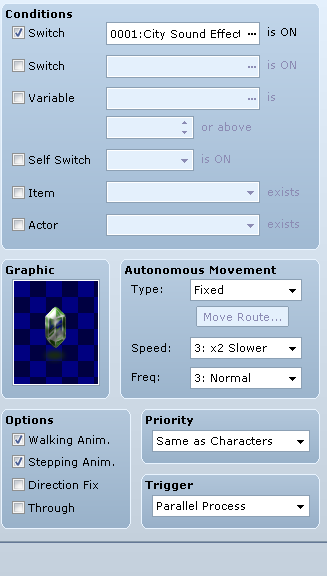 Wondering how people might do this with events or scripting? The flow seems simple enough, make a random roll, 1-4 then wait this long. After which, play sound effect, and loop again. This should be able to produce a fairly good background ambience for a dog barking in the distance. I wonder if scripts could even change the volume and pitch? Hmm..
