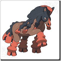 Mudsdale is known for its powerful body as well as its emotional fortitude, which keeps it from being agitated by anything. It never cries out, no matter what kind of trouble it’s in, and it defeats its opponents with a single powerful blow. Its legs are coated in protective mud, and the weight of this coating increases the force of its kicks. One kick, and a car is a pile of scrap!