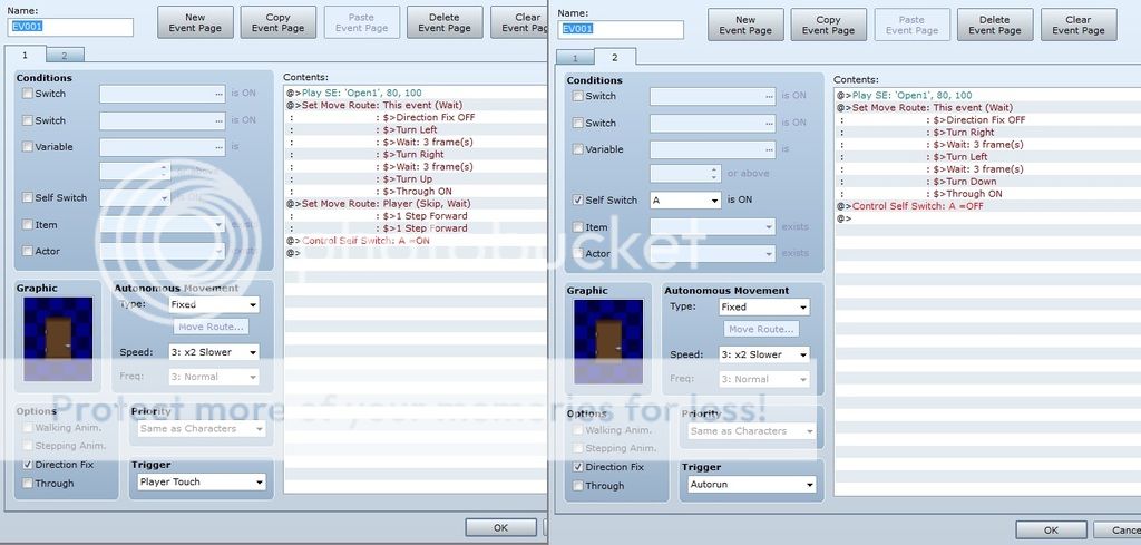 I've nearly always used the same door event in my other projects without a problem, and the event itself isn't a problem in this case. I've also used In-Depth Maps v2.0 by FenixFyrex so the character can walk under the walls when needed, like when entering the doors.