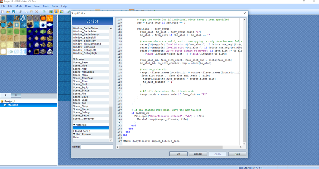 I'm super new to RPG maker, and am learning as I go along. I've been trying to use Shaz's Lazy Tileset Script Files. I've tried to follow this guide as best as I can (https://forums.rpgmakerweb.com/index.php?threads/lazy-tilesets.36354/), but have had no success.