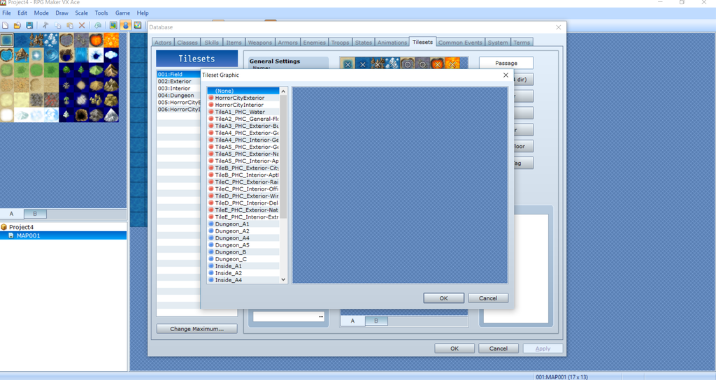 I've copied the script file into the 'materials' section. I've copied all tilesets from the dlc folder into my project tilesets folder. I've also copied Shaz's .VXA tileset files into this folder and I've inserted the 'import' code into the notes section in the database. Despite all of this...no luck.