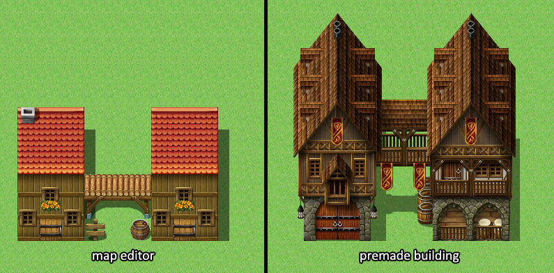 The thing is, then we might as well create a tileset instead. The buildings will either be created by the artist, or we will make autotiles so that the user can create their own buildings. Creating 'segments' or 'parts' of buildings to mix and match would simply not ... mix and match. Perhaps it's difficult to understand for someone who doesn't create tilesets, but getting things to work together seamlessly is one of the hardest and most difficult thing to do.Agreed. I know that segments take more time and effort, but I think, it is very well reasonable to expect that effort from a store pack. So, I hope, you make the premade homes with segments that one can better use to make a house longer etc. Would offer so much more ways to use the houses.