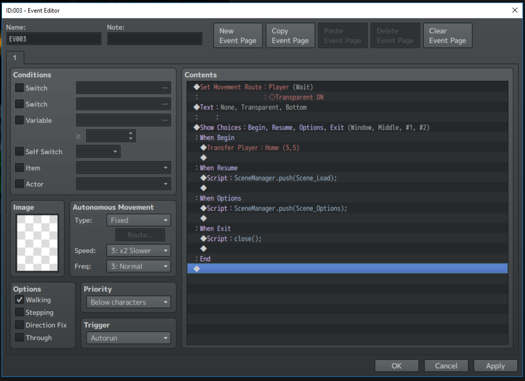 Hello~ I'm working on the titlescreen for my game and I ran into a problem, see I drew my own image in GIMP (using a map I created in RM as a base) and I'm using the HIME_PreTitleEvents plugin to event the titlescreen, however I'm running into a problem, as you can see in the provided pictures I have the textbox that serves as the commands set to appear at the bottom, however, the textbox appears in about the middle of the screen, just above the doors.