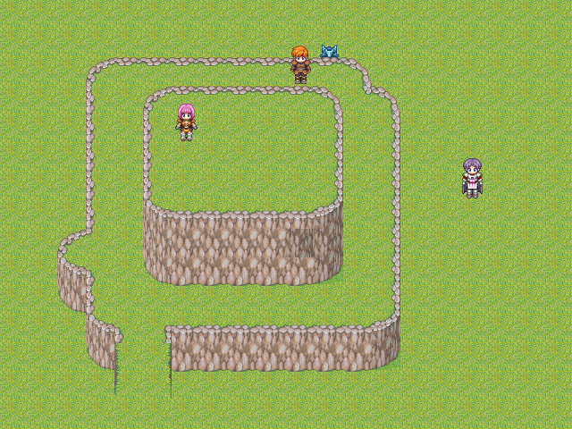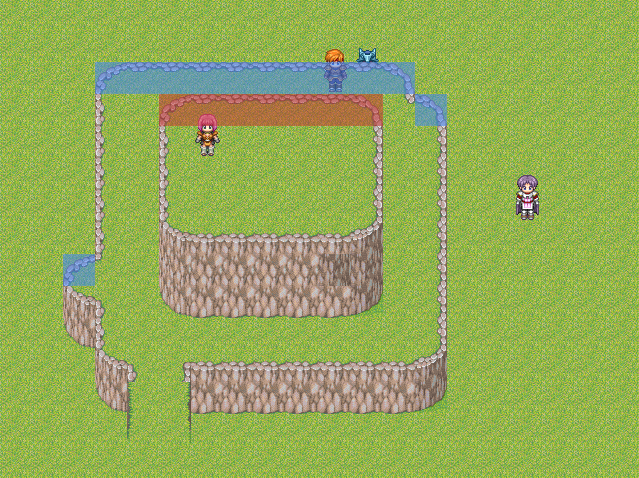 Thats actually my goal i want to achieve. The Situation on this Screenshot is, with the tools we are given at the Moment, not possible! Aluxes (our Player) is on a higher level than the blue Knight next to him for instance. So, logically, they should not interact and collide with each other and the Tiles affecting them should behave (passage and priority settigns) right and be drawn properly like you see above. Like said, it is not possible in the Moment because the Maker do not know what Elevation is. So we have to teach him.