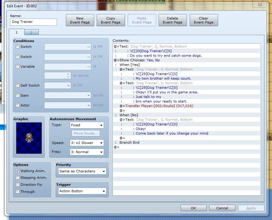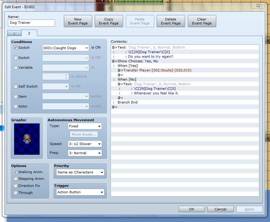 Now I put a switch in Dog Trainer's Bro as a requirement so it set's up Page 2 of the Dog Trainer. Now that should repeat itself