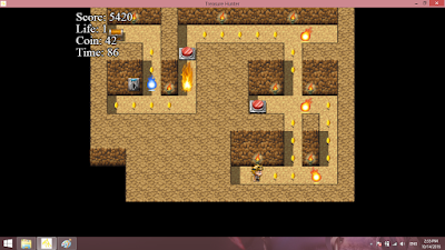 the i have made recently, another mini games semi platform called "Treasure Hunter". This game is made by Rpg Maker MV, you play as the main character, a treasure hunter like collectings treasure inside a dungeon. Player must complete every level by dodging fire, dodging rocks slide, collecting coins, activate some switchs, get scores, and open the treasure chest before the time runs out.