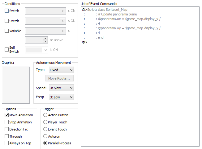 ive spent hours trying to search how to lock a panorama/parallax so i can use it as a background layer on a map. ive found that i had to make the panorama have the same speed as tiles, and that i had to change something in Spriteset_Map (line 120).