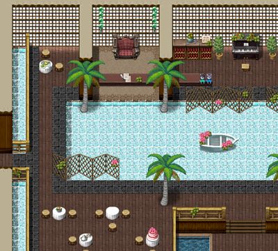 FSM (growl) has a lovely post of a spa-lie tileset - it had a white boat (like the XP boat) with pink flowers, a wooden screen decorated with plants, and several other waterside additiona and was really quite lovely.