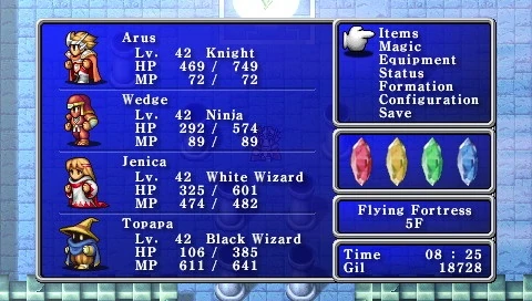 Also for a better idea think of Final Fantasy 1. In the menu is 4 crystals and after you beat each fiend it changes the gray crystals to a colored one. Se image below.