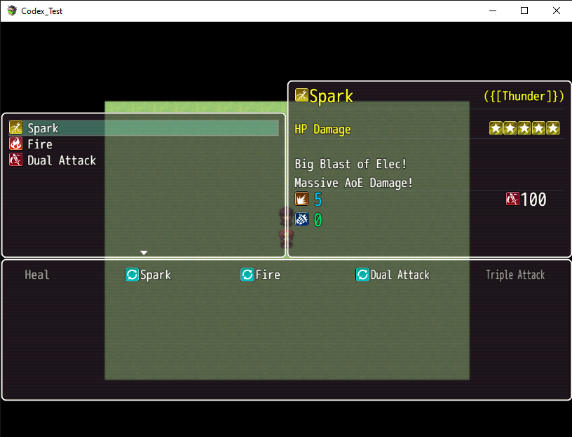 Enemy AI has been modified and is now pathetically easy to customize. Developers no longer have need to fight with RPG Maker's default 'rating' system to determine the style of action an enemy will be going to take. Instead, a simple around has been taken. The enemy will use skills in accordance as to how they are in the action patterns setting. Provided the set conditions are met.
